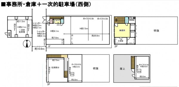 建物前に別棟に一時的駐車スペースあり 準工業地域 クレーン 1階〜3階 延床464.18u
